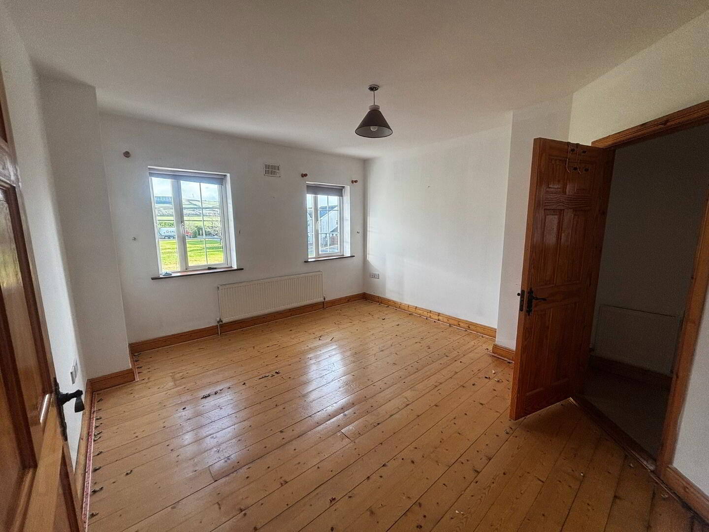 This detached residence extends to c. 1,332 sq. ft., offering well-proportioned accommodation throughout. The ground floor comprises an entrance hallway, spacious kitchen/dining area, bright sitting room, and a convenient guest WC. On the first floor, there are three generous bedrooms, including one ensuite, along with a well-appointed main bathroom. The property has been stripped back internally, presenting an excellent opportunity for the new owner to complete the finish to their own style and standard.