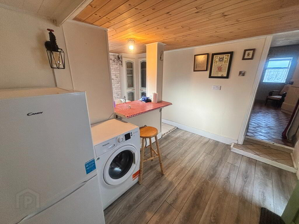 Living Room 13’6 x 9’2 (4.1 x 2.8) A warm and inviting space featuring a charming fireplace with a solid fuel stove, perfect for cozy evenings. The room is enhanced by tiled flooring and a timber-panelled ceiling, adding to its rustic appeal. Conveniently, it offers direct access to a bedroom, the hallway, and the kitchen.