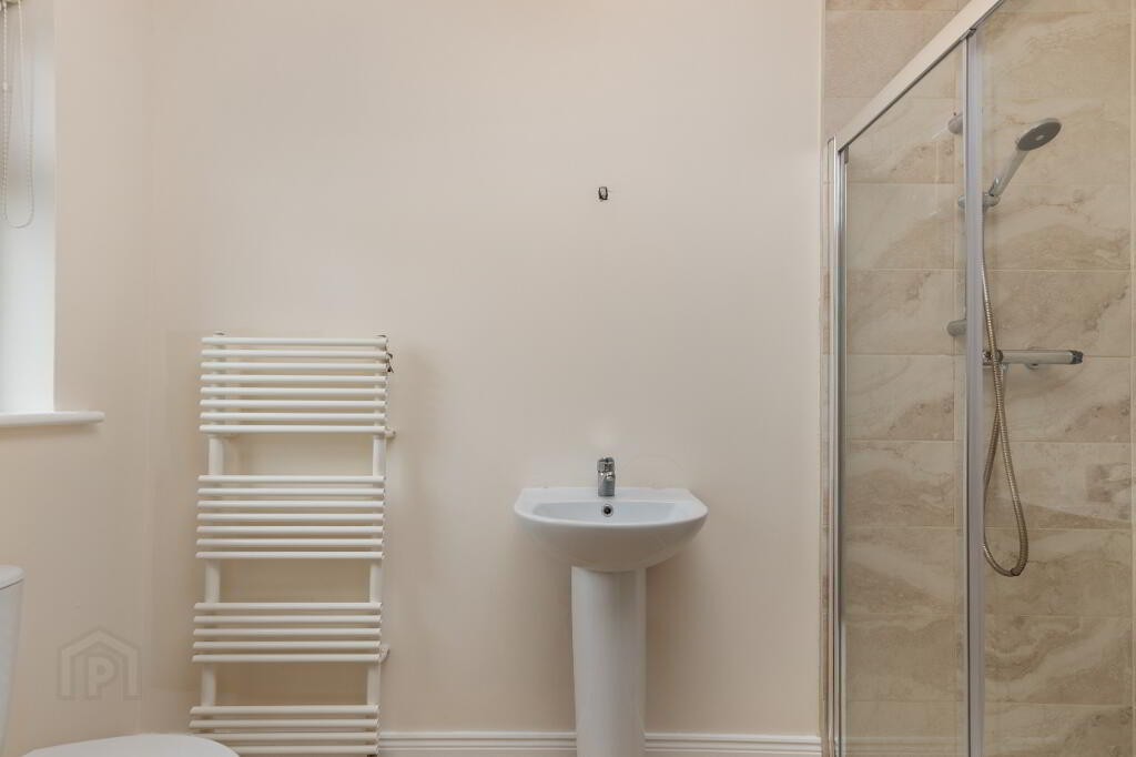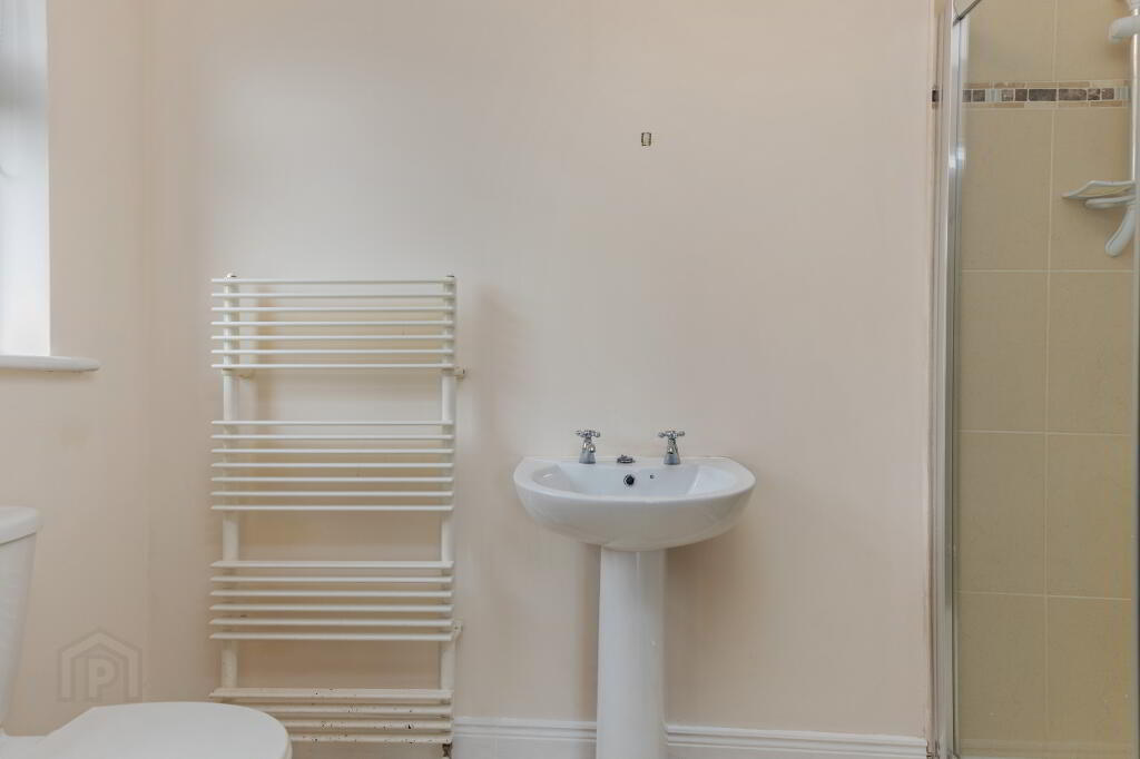 Ensuite Bathroom 10’09 x 9’05 (3 x 2.7) WHB, WC and Shower, tiles on fl & around shower