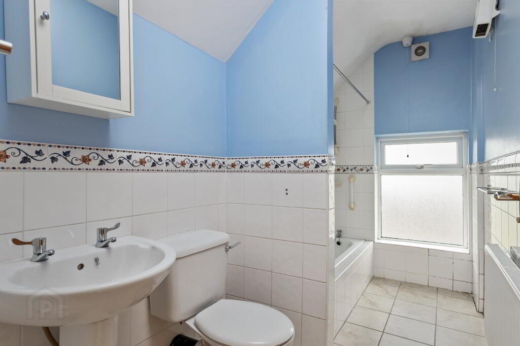 Bathroom 4’9 x 9’2 (1.5 x 2.8) WHB, WC and Bath with Mira Electric shower over bath. Tiled floor and tiled ½ way up the walls.