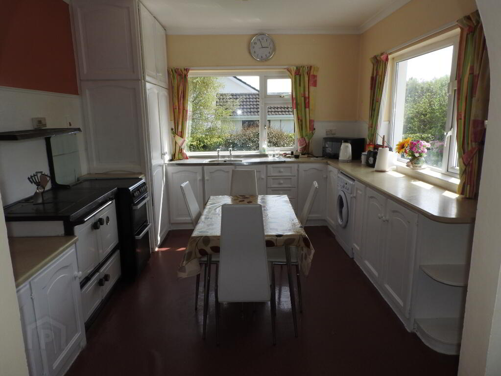 Detached bungalow residence on a lovely site with double entrance, beautiful landscaped gardens front and rear, detached garage. Accommodation includes entrance hallway, kitchen-dining-living, sitting room, 4 bedrooms and bathroom.